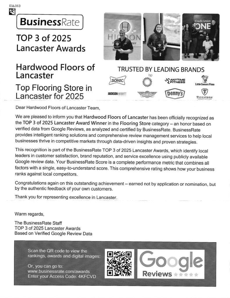 Hardwood Floors of Lancaster is a TOP 3 of 2025 Lancaster Award Winner in the Flooring Store category Read More